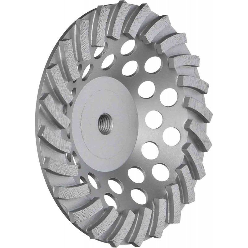 Muela de copa de diamante Milwaukee DIAMOND MAX de 7 pulgadas con borde turbo segmentado de una sola fila para pulido de hormigón (18 segmentos)